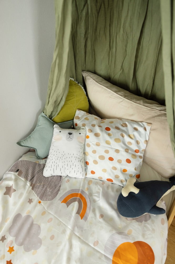 Dīvānu. Dizaina elementu, kas interjerā izskatītos lieliski, turklāt uz tā varētu ērti iekārtoties kopā ar mazuli.
