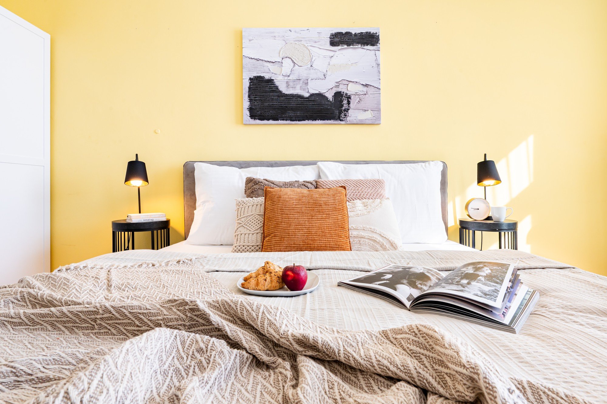 Dzīvoklis, kas paredzēts īstermiņa izīrēšanai, ir piedzīvojis pārvērtības, kuru mērķis bija radīt funkcionālu, mājīgu un vizuāli vienotu interjeru. Galveno lomu dizainā spēlēja krāsas, kas palīdzēja savienot esošo aprīkojumu ar jauniem elementiem un piešķirt telpai savu raksturu. Izteiksmīgā krāsojuma guļamistaba kļuva par organisku kopuma daļu un izcēla atmosfēru, kurā viesi var justies kā mājās.