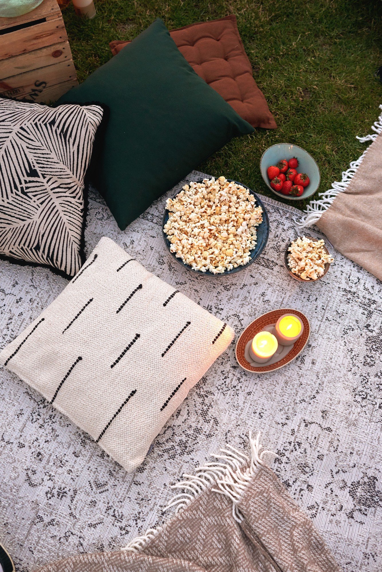 Lai Veronika un viņas vīrs varētu baudīt filmu, nepieciešams radīt ērtu un mājīgu atmosfēru. "Karup Design" saliekamie atzveltnes krēsli un izvelkamie matrači nodrošina ērtu atbalstu gan sēžot, gan zvilnot. Arī bohēmiska stila aksesuāri, piemēram, pufi, segas, gaismas un spilveni, rada mājīgu atmosfēru.
