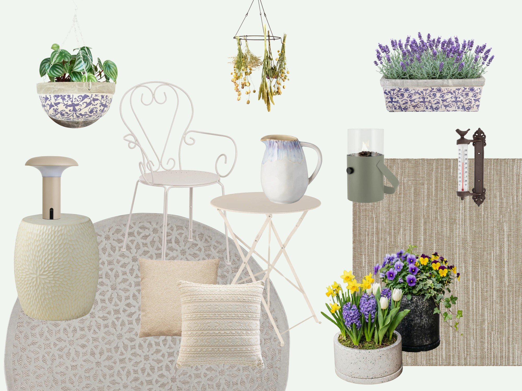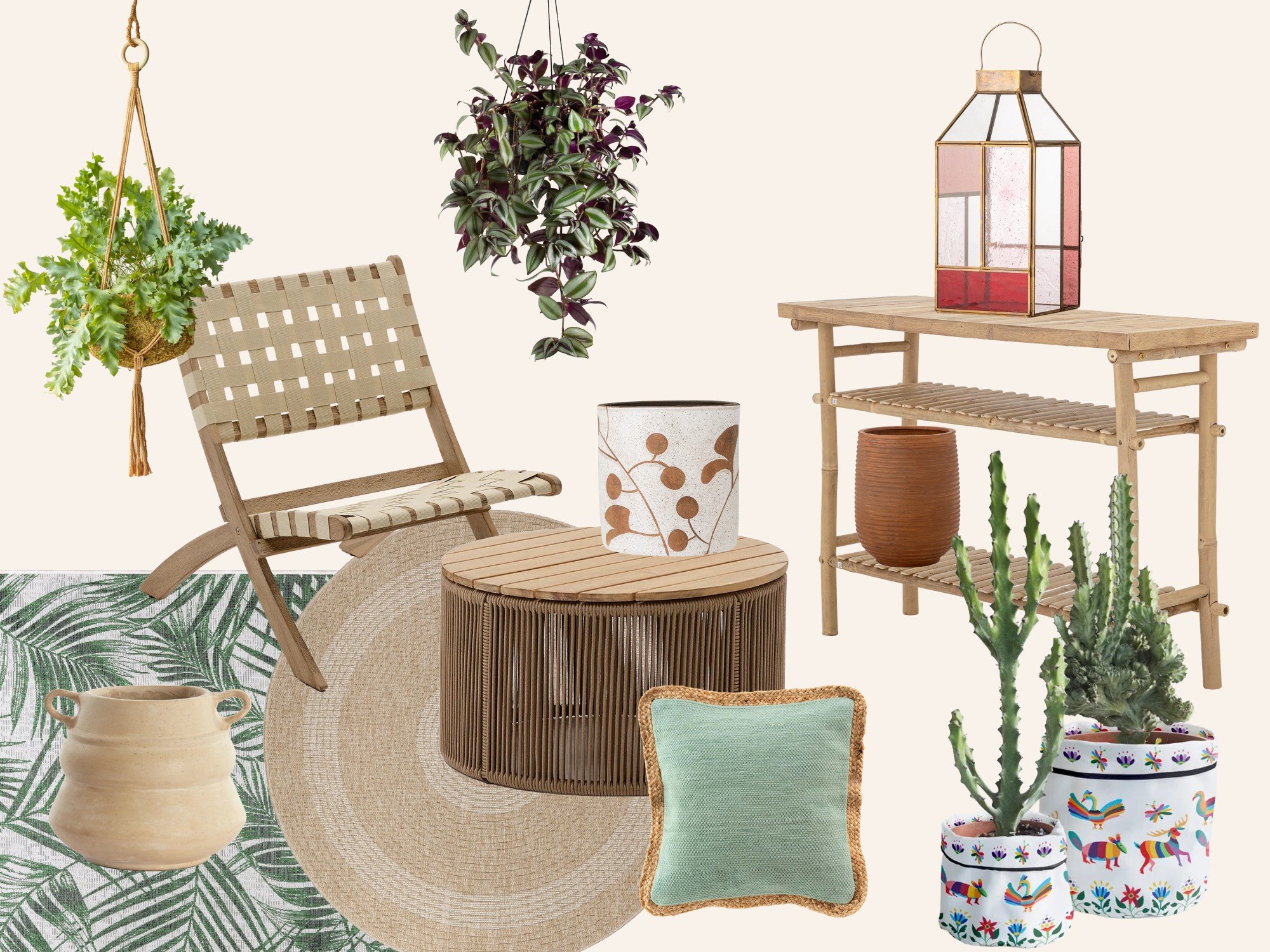 Bohēmas stila balkonu raksturo brīva atmosfēra, dabīgi materiāli un tekstūru slāņošana. Zaļumi šeit bieži vien kalpo kā galvenais dekoratīvais elements – kombinējiet piekaramos podus ar augiem uz grīdas, lai telpa izskatītos dzīvīga un dabiska. Mājīgumu piešķirs ērti pufi un mīksti spilveni, rotangpalmas vai gaiša koka elementi, bet vakarā – arī maiga laterna vai lampiņu virtenes. Turieties pie dabiskas krāsu paletes, piemēram, smilškrāsas, bēšas vai terakotas.