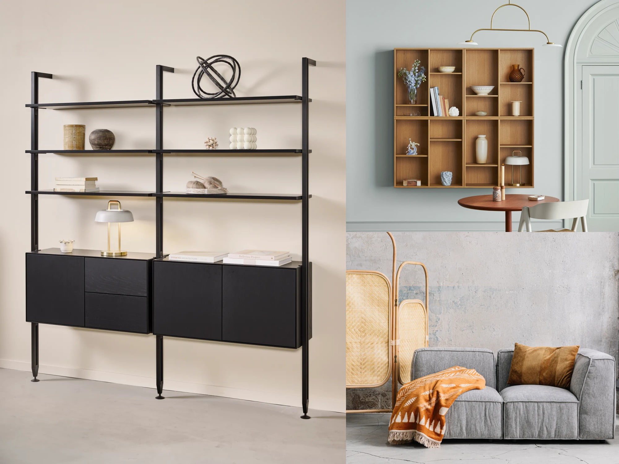 Modulāro mēbeļu sistēmas un daudzfunkcionāli priekšmeti – soliņi ar uzglabāšanas vietu, plaukti kā dizaina elementi vai dīvāni, kas maina savu izskatu – piedāvā gudrus un stilīgus risinājumus.