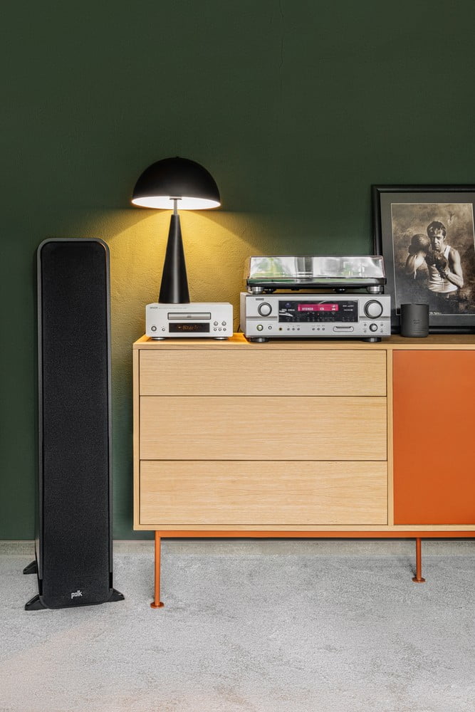 Lielāko uzmanību pievērsu skapītim, kas paredzēts plašu atskaņotājam. Visa šī siena ir paredzēta mūzikai un platēm. Tā ir arī diezgan liela un izteiksmīga mēbele nelielai telpai.