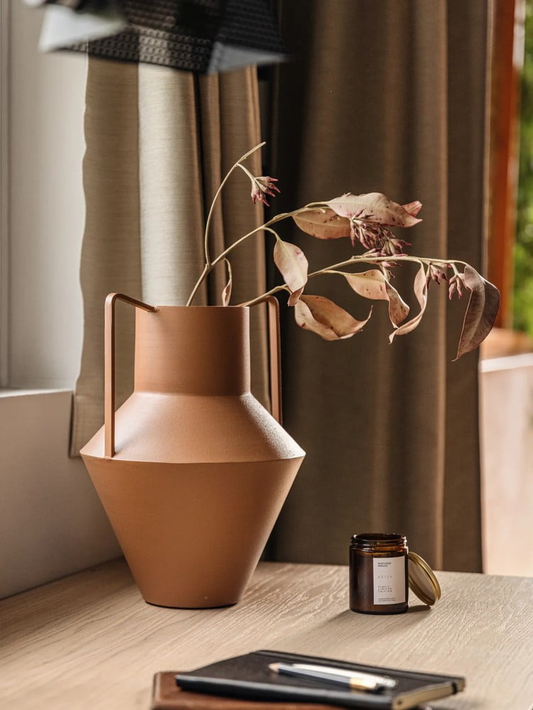 Man patīk, ja aksesuāri ir ne tikai dekoratīvi, bet arī praktiski. Tāpēc mūsu gadījumā es koncentrējos uz apgaismojumu, vāzēm, bilžu rāmjiem un arī spilveniem un dīvāna pārklājiem, lai radītu mājīgu atpūtas vietu. Viss, protams, ir dabīgos toņos.