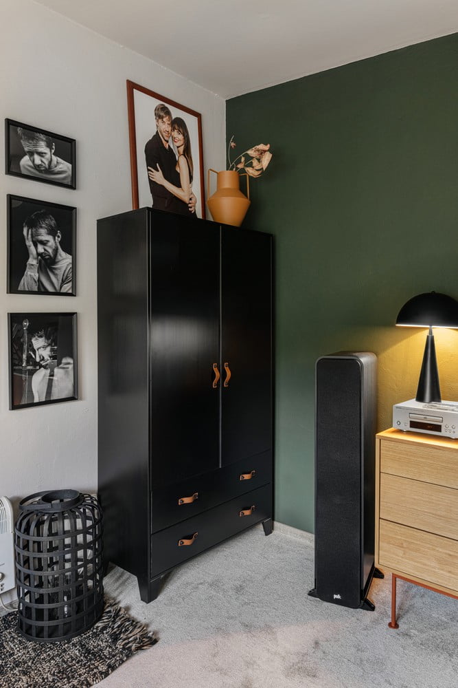 Vairākumā gadījumu es cenšos rast nedaudz drosmīgāku pieeju interjera dizainam, nekā sākotnēji tas bija iecerēts. Šajā gadījumā, gluži pretēji, mēs sākām ar vēlamajām drosmīgajām krāsām, kuras dizaina procesa laikā proporcionāli pieskaņojām, lai sasniegtu līdzsvarotu rezultātu.