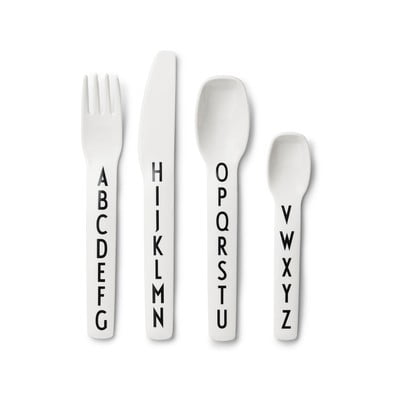 4 daļīgs balts bērnu galda piederumu komplekts Design Letters