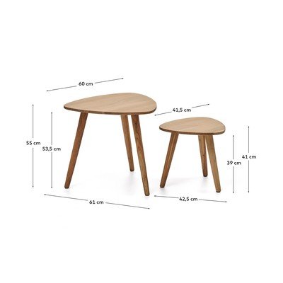 Sānu galdiņu komplekts Duvani no zīmola Kave Home ir praktisks divu gabalu komplekts, ko var viegli salikt vienu otrā. Šie galdiņi apvieno patīkamu izskatu un praktiskumu, tāpēc tie lieliski iederēsies mūsdienīgos interjeros.