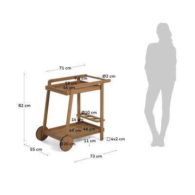 Visa konstrukcija ir izgatavota no akācijas koka. Virsma ir apstrādāta ar eļļu, kas padara to izturīgāku pret mitrumu un putekļiem. Tajā pašā laikā izceļas akācijas koka masīva skaistums. Ratiņi ir piemēroti lietošanai iekštelpās un ārpus telpām.