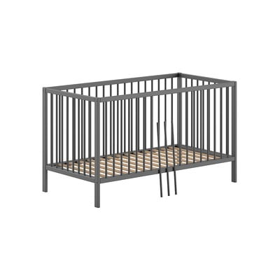 70x140 cm, ar noņemamu sānu/ar regulējamu augstumu, ar redelēm, dižskābarža masīvkoka, virsmas apdare: krāsa, antracīta pelēka