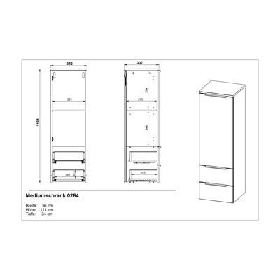 Vannas istabas skapis CrandonAugsts/piekarams/šaurs, no skaidu plāksnes, virsmas apdare: melamīns, antracīta pelēks, platums 36 cm, augstums 111 cm, dziļums 34 cm