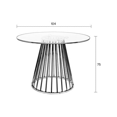 Elegantajam apaļajam ēdamgaldam no White Label ir 10 mm bieza rūdīta stikla virsma.