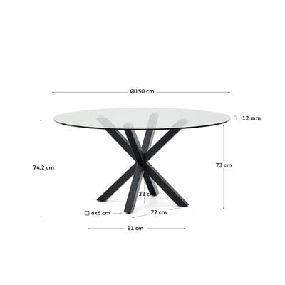 Apaļš ēdamgalds ar stikla galda virsmu ø 150 cm Argo – Kave Home