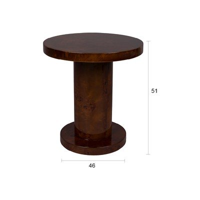 Apaļš sānu galdiņš Quinn no zīmola Dutchbone. Novietojiet uz tā iecienītu grāmatu vai kafijas tasi un ļaujiet tā siltajam riekstkoka dekoram padarīt jūsu dzīvojamo telpu mājīgāku.