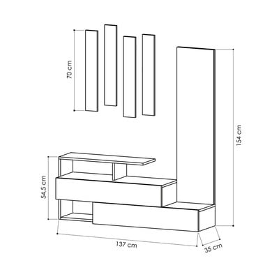 Balta/brūna, platums 137 cm, augstums 54,5 cm, dziļums 35 cm