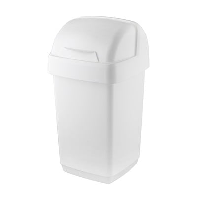 Neliela, uz kaudzēm saliekama atkritumu urna, kas ietilpst manā šķiroto atkritumu skapī.