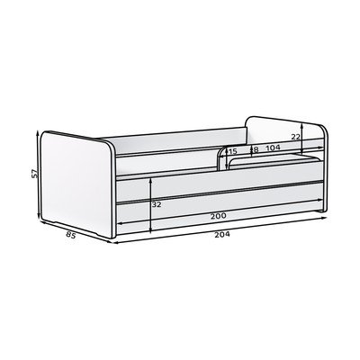 80x200 cm, ar matraci/ar redelēm, virsmas apdare: lamināts, balta