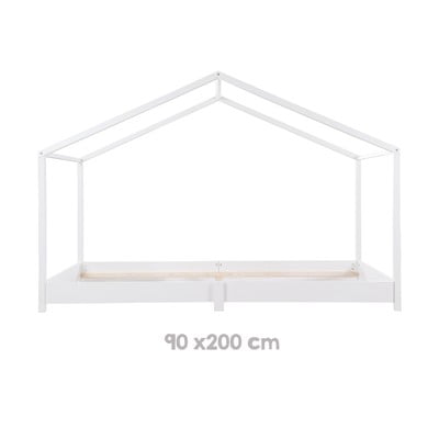 90x200 cm, mājas formā, ar redelēm, masīvkoka, virsmas apdare: lamināts, balta
