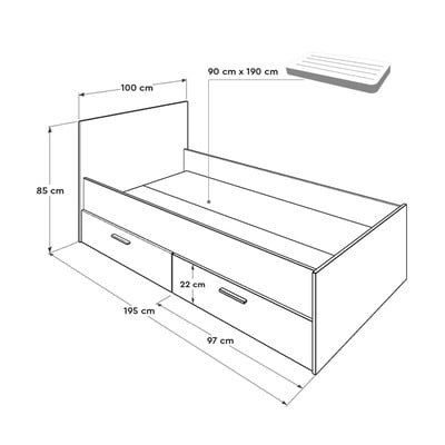 90x190 cm, ar veļas kasti, virsmas apdare: lamināts, balta/dabīga toņa