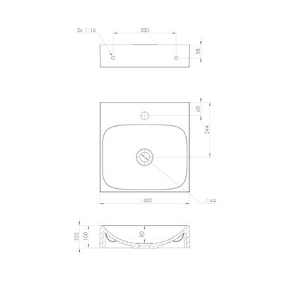 No minerālu kompozītmateriāla, balta, platums 40 cm, dziļums 40 cm, augstums 10 cm