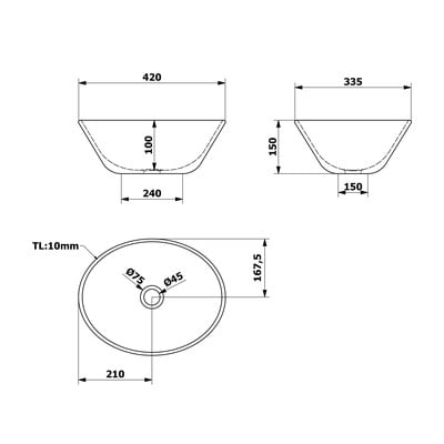 KeramikasBaltaPlatums 42 cmDziļums 34 cmAugstums 15 cm