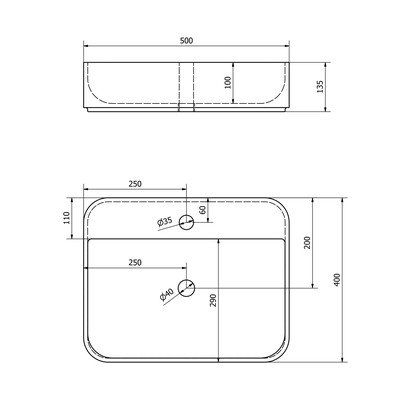 Keramikas, balta, platums 50 cm, dziļums 40 cm, augstums 13,5 cm