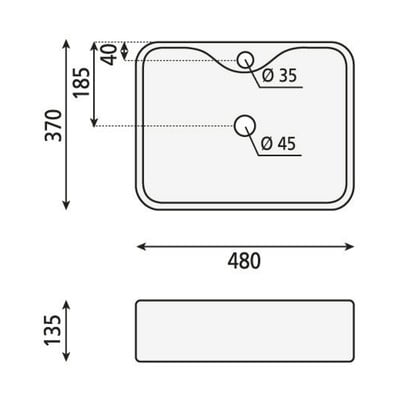 Keramikas, balta, platums 48 cm, dziļums 37 cm, augstums 13 cm