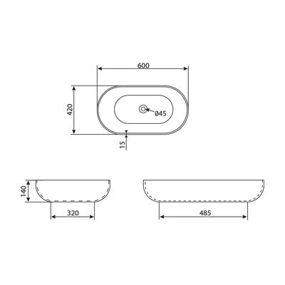 Keramikas, balta, platums 60 cm, dziļums 42 cm, augstums 14 cm