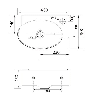Stūra, keramikas, balta, platums 43 cm, dziļums 28,5 cm, augstums 15 cm