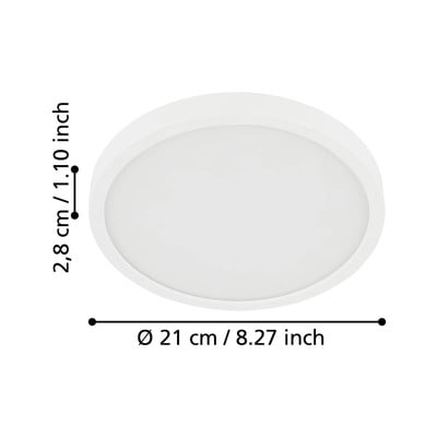 LED, ar plastmasas abažūru, metāla/plastmasas, balta, ø 21 cm, augstums 3 cm