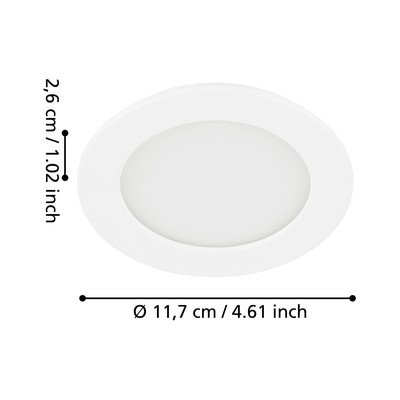 LED, ar plastmasas abažūru, metāla/plastmasas, balts, ø 12 cm, augstums 3 cm