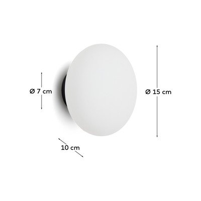 Sienas lampa BamilaStikla, balta/melna, ø15 cm, augstums 10 cm