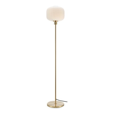 Sober Elegant Floor Lamp lepojas ar piena stikla abažūru ar lineāri viļņainu formu. Tā rezultātā istabu caurstrāvo patīkams matētas gaismas mirdzums.