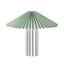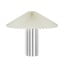 Lampas apakšējo daļu veido cilindriska pamatne ar raksturīgām vertikālām rievām, kas tai piešķir elegantu un strukturētu izskatu. Lampas kopējā forma atgādina sēni, padarot to par interesantu solitāru elementu uz naktsgaldiņa, kumodes vai rakstāmgalda.