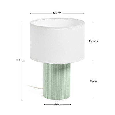 Kave Home lampa Bianella pārsteidz ar savu līdzsvaroto un moderno dizainu. Tās cilindriskā pamatne ir pārklāta ar smalku velvetes audumu, kas rada siltu sajūtu un interesantu vizuālo faktūru.