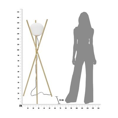 Ar stikla abažūru, balta/zelta krāsas, augstums 155 cm