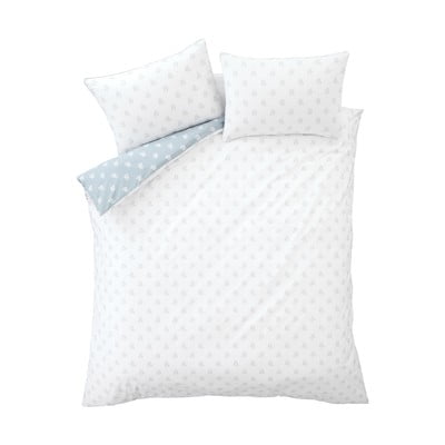 Vienguļamā, ar pogām, divpusēja, kokvilnas, ar ziedu rakstu, balta/zila, 135x200 cm