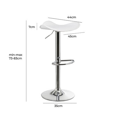 (2 gab.), ar regulējamu augstumu, polsterētas, no ādas imitācijas, baltas, sēdekļa augstums 73 cm