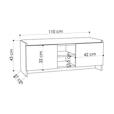 Ar soliņuNo MDFVirsmas apdare: melamīnsBalts/melnsPāru skaits 10 Platums 110 cmAugstums 43 cmDziļums 37 cm