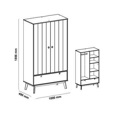 No MDFVirsmas apdare: krāsaBalts/dabīga toņaPlatums 100 cmAugstums 180 cmDziļums 49 cm