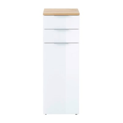 Vannas istabas skapis PescaraAugsts/šaurs, ar ozolkoka imitāciju, no skaidu plāksnes, virsmas apdare: melamīns, ar spīdīgu virsmu, balts/dabīga toņa, platums 39 cm, augstums 112 cm, dziļums 34 cm