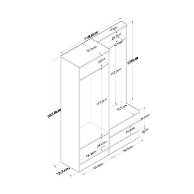 Priekšnama iekārta TheresaAr riekstkoka imitāciju, no skaidu plāksnes, virsmas apdare: melamīns, balta/dabīga toņa, platums 120 cm, augstums 183 cm, dziļums 35,5 cm