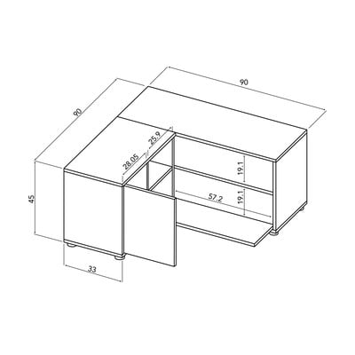 TV galdiņš AngleStūra, ar ozolkoka imitāciju, no skaidu plāksnes, virsmas apdare: melamīns, balts/dabīga toņa, platums 90 cm, augstums 45 cm, dziļums 90 cm