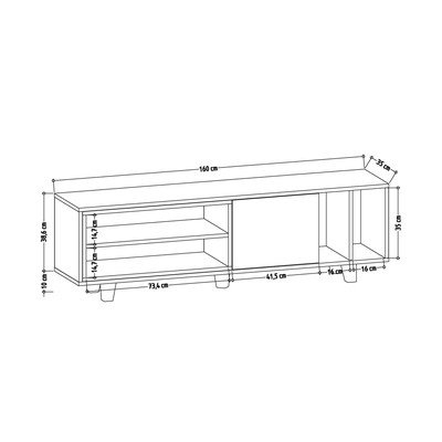 Ar ozolkoka imitāciju, no MDF, virsmas apdare: melamīns, balts/dabīga toņa, platums 160 cm, augstums 49 cm, dziļums 35 cm
