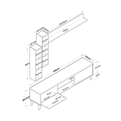 Ar riekstkoka imitācijuNo MDFVirsmas apdare: melamīnsBalts/dabīga toņaPlatums 180 cmAugstums 48 cmDziļums 35 cm