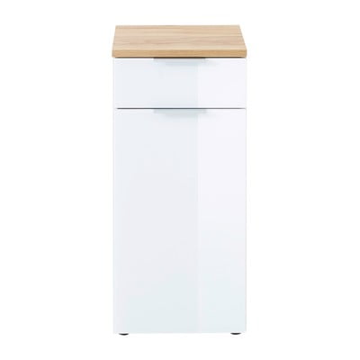 Vannas istabas skapis PescaraZems, ar ozolkoka imitāciju, no skaidu plāksnes, virsmas apdare: melamīns, ar spīdīgu virsmu, balts/dabīga toņa, platums 39 cm, augstums 86 cm, dziļums 34 cm