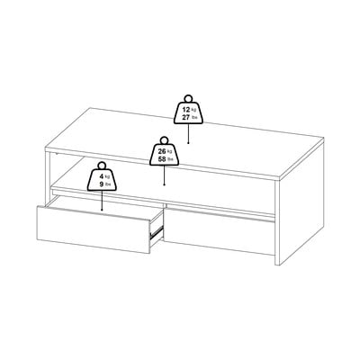 Tam ir atvērta tipa uzglabāšanas vieta, kas sadalīta divās daļās, divas praktiskas atvilktnes un šaurs plaukts. Ideāli piemērots nepieciešamo lietu uzglabāšanai un dekorāciju izstādīšanai. Ar savu pārlaicīgo dizainu tas iederas jebkurā dzīvojamā telpā un piešķir tai svaigu, mūsdienīgu izskatu.