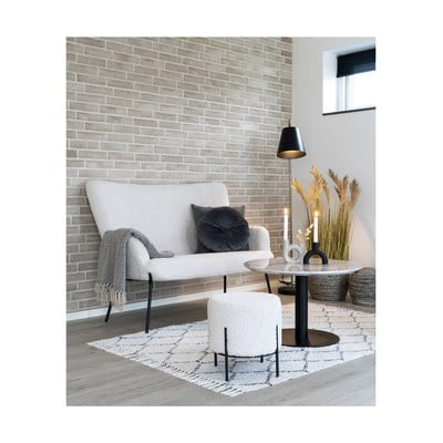 Divvietīgais dīvāns Glasgow no House Nordic ar elegantu buklē apdari baltā krāsā un melnām metāla kājām piešķirs jūsu interjeram modernu un mājīgu noskaņu.