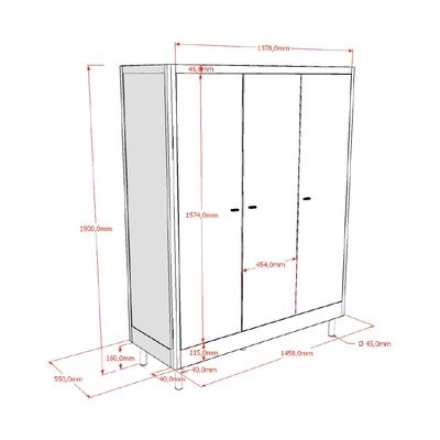 Dižskābarža masīvkoka, virsmas apdare: krāsa, balts, platums 146 cm, augstums 190 cm, dziļums 55 cm
