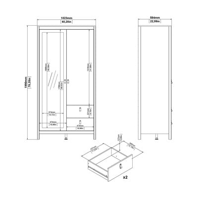 Ar spoguliNo skaidu plāksnesVirsmas apdare: folijaAr matētu virsmuBaltsPlatums 102 cmAugstums 199 cmDziļums 58 cm