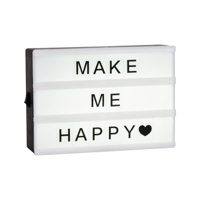 Tai ir 85 dažādi burti, kurus varat izmantot, lai uz paneļa izveidotu savu uzrakstu, kas pēc tam tiek izgaismots ar vēsi baltām gaismas diodēm. Ražošanā ir izmantots izturīgs plastmasas materiāls. Lai to iedarbinātu, ir jāpievieno trīs AAA baterijas, kas nav iekļautas komplektā.