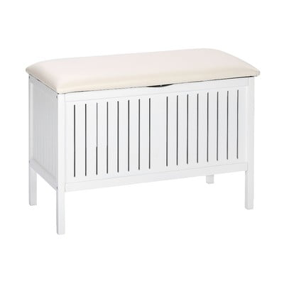 Ļoti noderīgs soliņš vannas istabā - netīru drēbju uzglabāšanai. Tas arī labi izskatās.